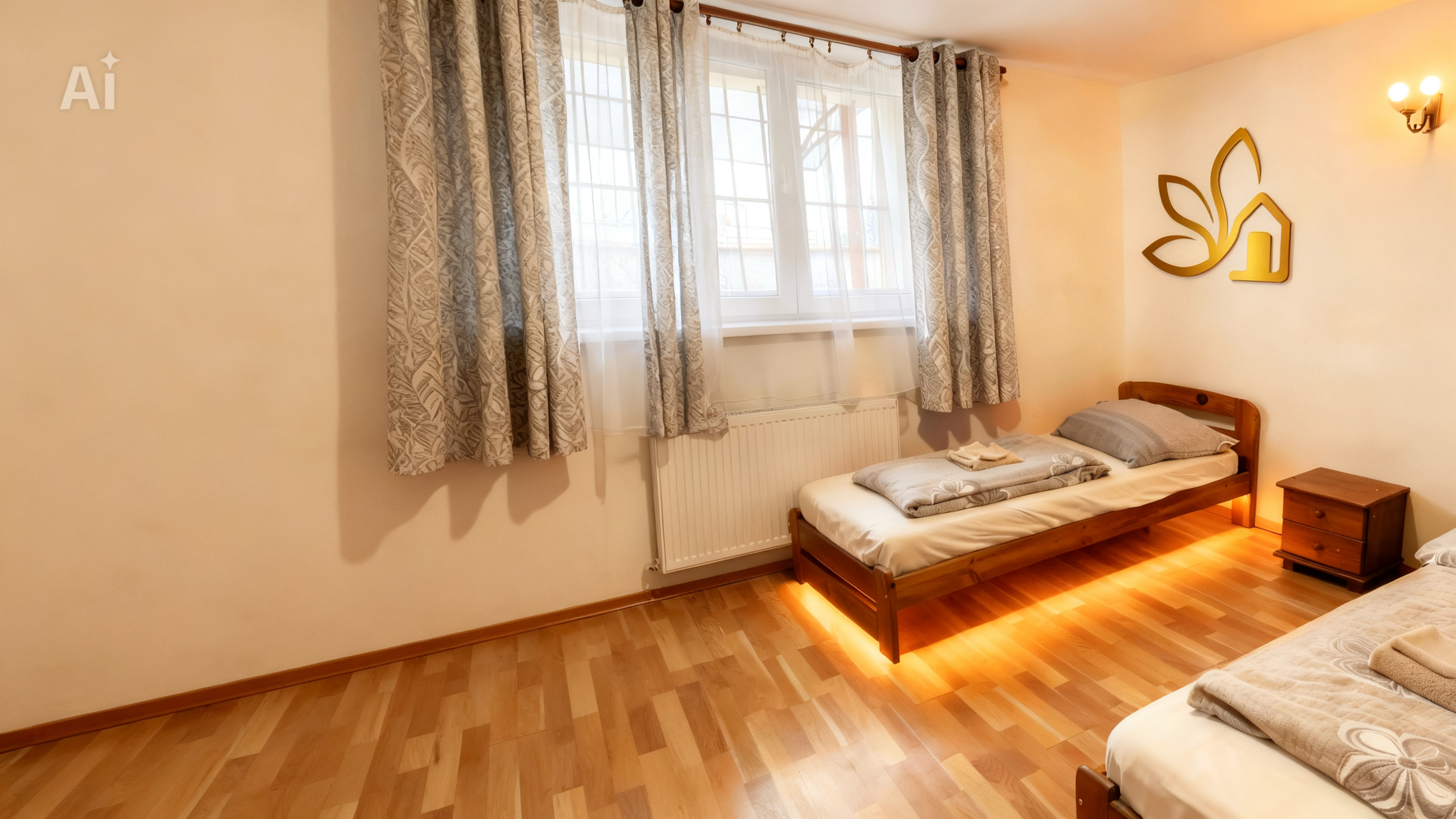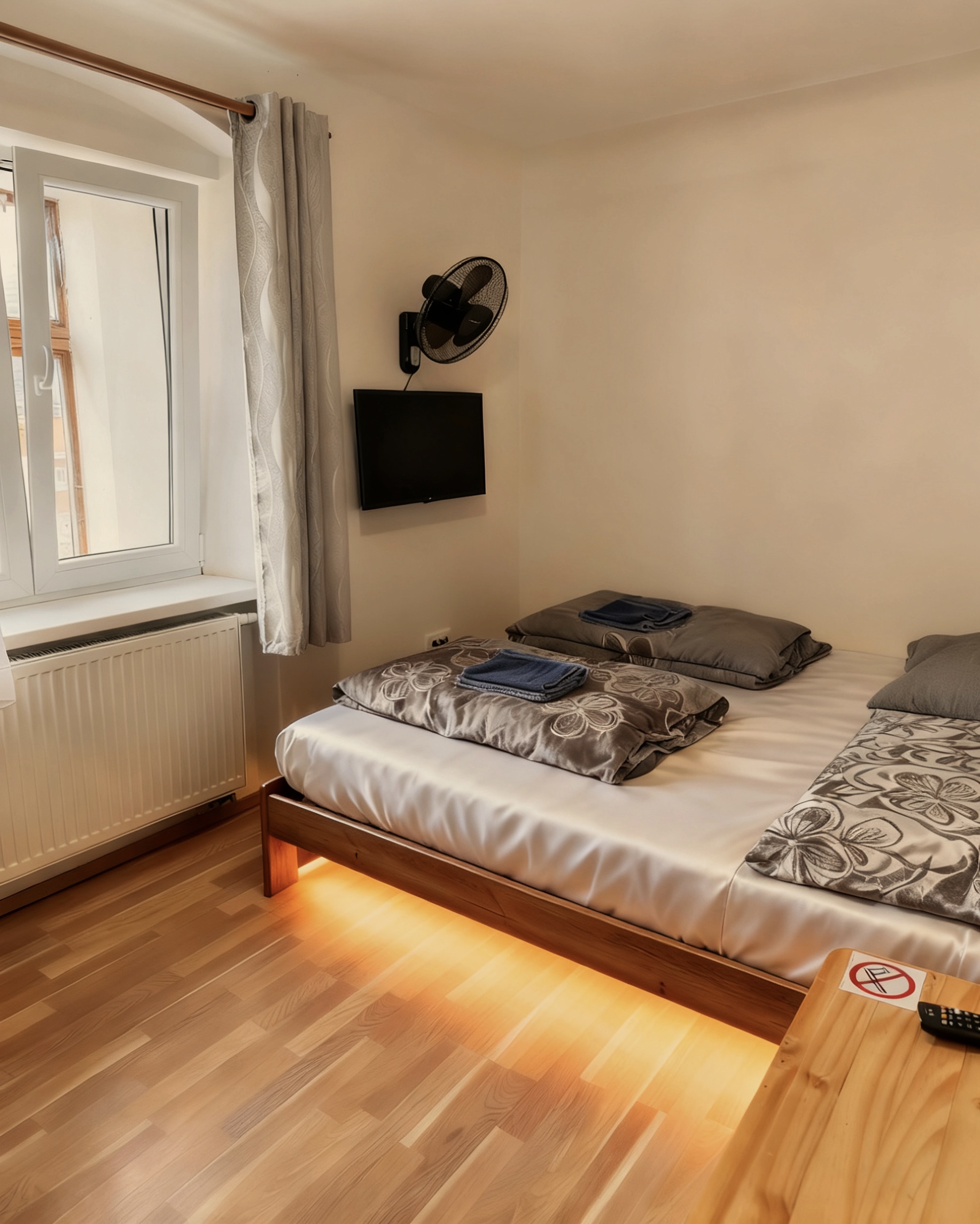 Tento apartmán je konfigurován pro vaši maximální pohodlnost. První ložnice s jednou dvoulůžkovou postelí s rozměrem 160x200cm a nočním stolkem, chytrou televizi, skříní na oblečení, a větrákem. Stejně vybavená je také druhá ložnice, ale se dvěmi jednolůžkovými postelí o rozměrech 90x200cm.