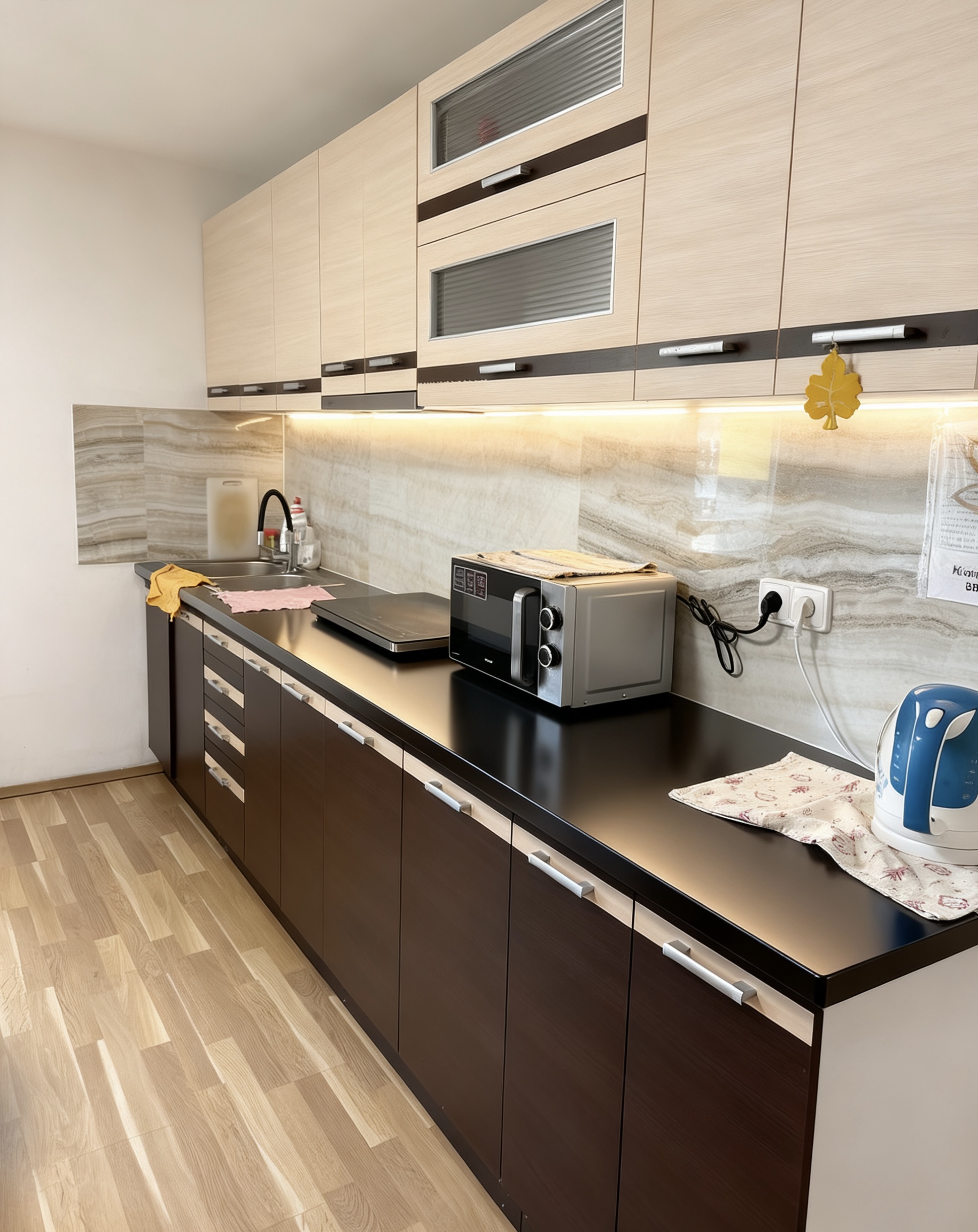 Kuchyňská linka je standardně vybavená spotřebiči jako indukční varná deska, mikrovlnou troubou, ledničkou, atd., skříní s různými nádobí na vaření a příbory. Spojená s kuchyní je také jídelní stůl, a přístup na obrouvkou otevřenou terasu s výhledem do města s možnostá venkovní grilování.